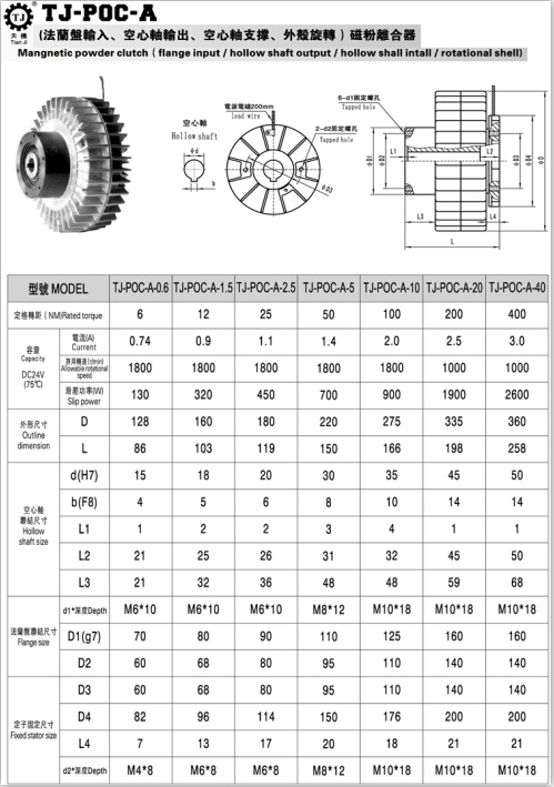 外旋轉磁粉離合器一樣平常是24V直流電源接入即可,不分正負極。