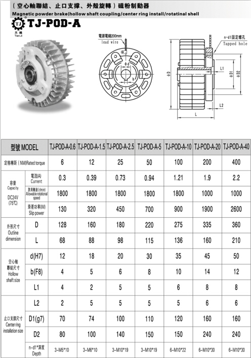 東莞天機(jī)傳動孔式磁粉剎車器安裝尺寸圖: